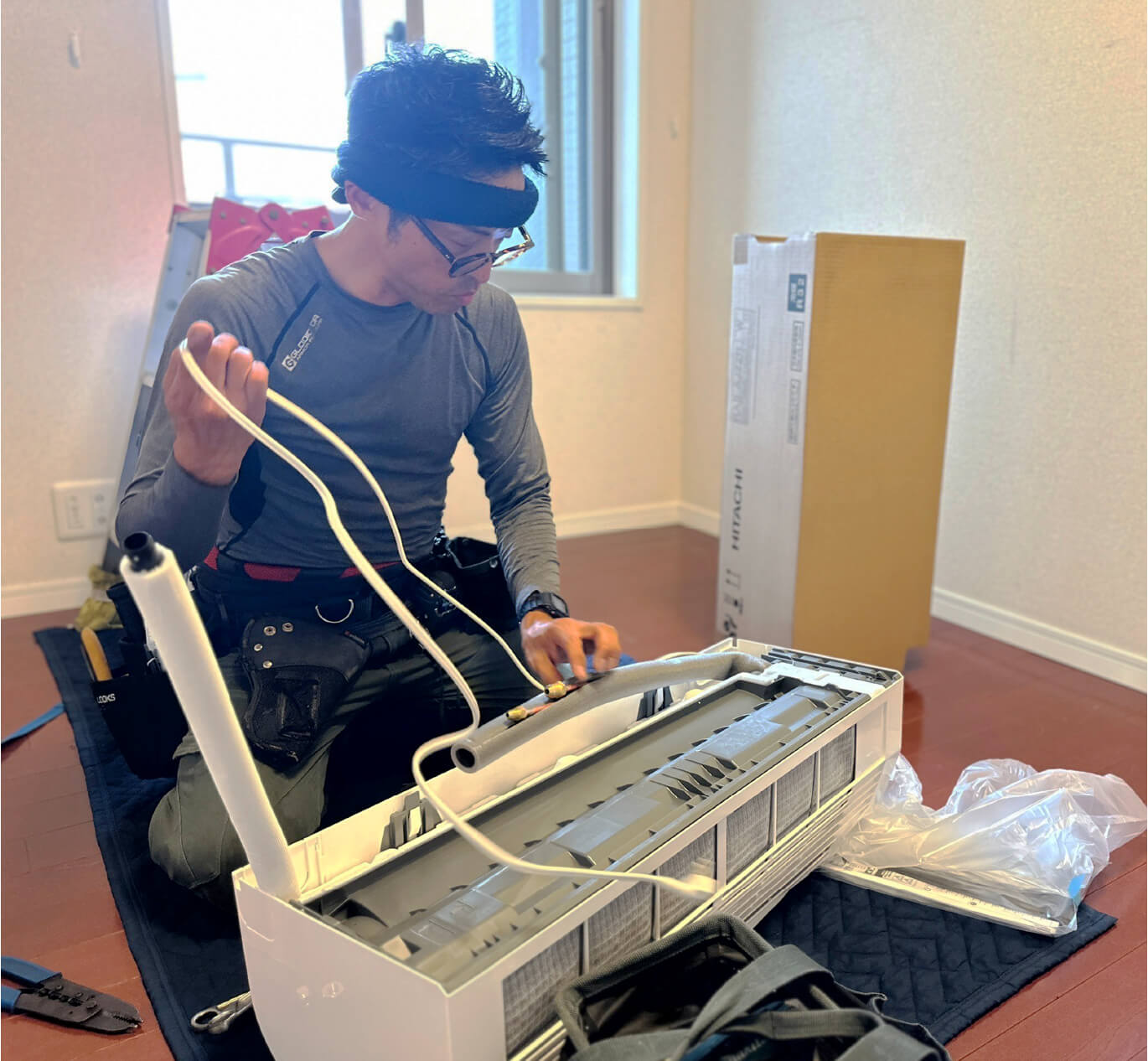 現場には割とすぐに慣れちゃったんですけど、まだまだ経験が足りないなと思うことはありますね。施工したことがないパターンとか、ちょっと特殊なエアコンとかが出てくるとちょっと苦戦します(笑)